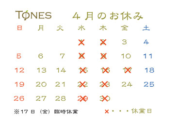 3月20日(金)、27日(金)休業